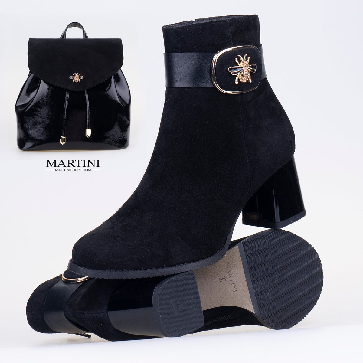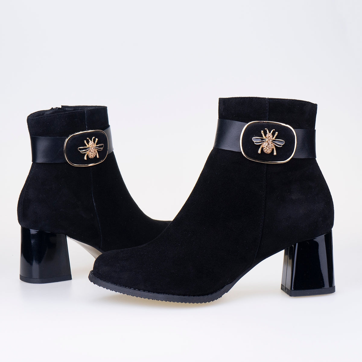 Vă prezentăm stilatele botine pentru femei MAYA, care combină rafinamentul și confortul. Fabricate dintr-un amestec de velur și piele, aceste botine sunt ideale pentru orice ocazie. Accesoriul interesant sub formă de albină adaugă un accent unic, care atrage privirile și subliniază individualitatea dumneavoastră. Înălțimea medie a tocului asigură confort la purtare pe parcursul întregii zile, fără a face compromisuri cu eleganța. Cu botinele MAYA veți fi nu doar la modă, ci și încrezătoare în pașii dumneavoastră!