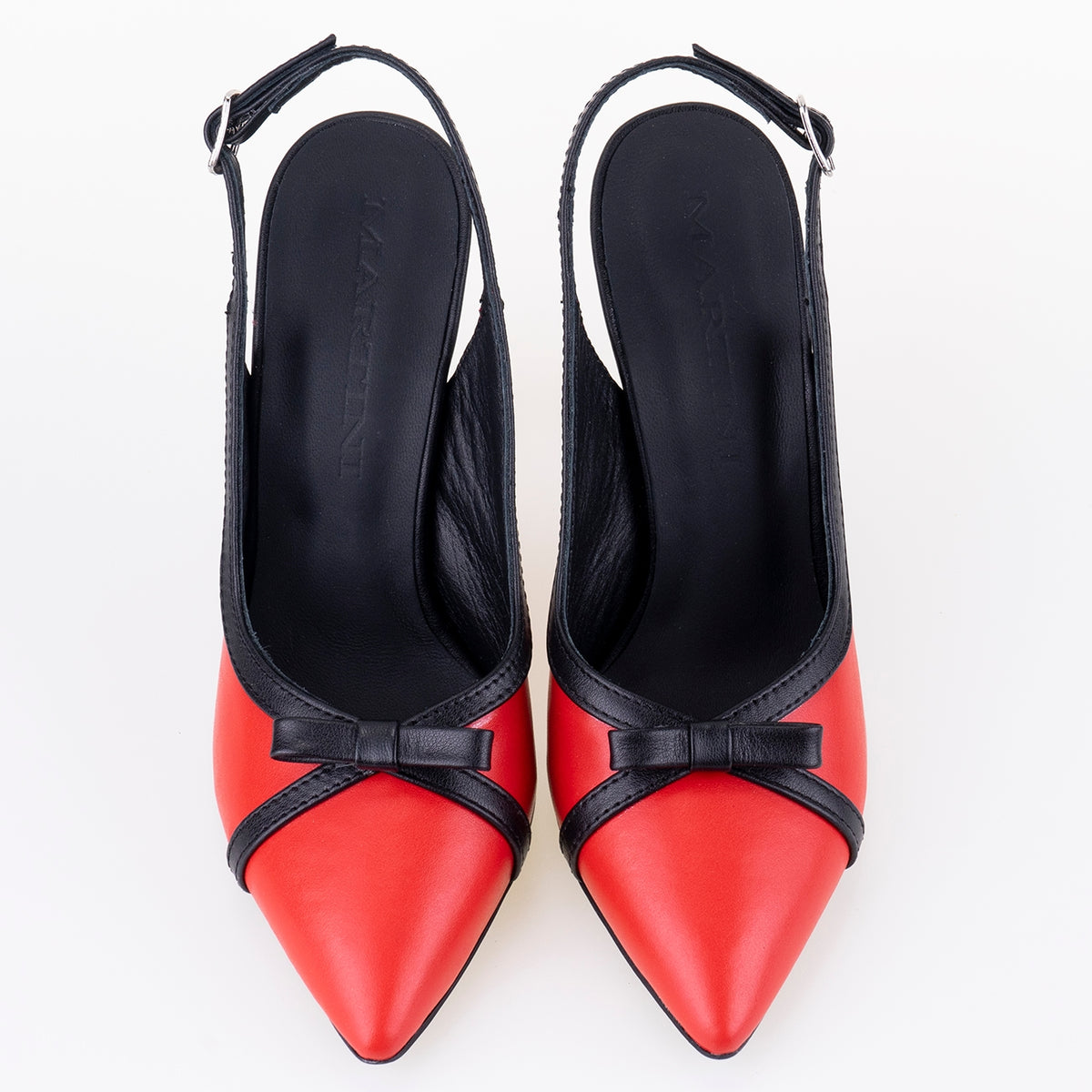 Stil, eleganță și calitate impecabilă – pantofi de designer "STELLA". Inspirați de femeia modernă, cu accente contemporane. Fiecare pereche este realizată manual din piele naturală într-o combinație de roșu și negru, pentru a garanta confort, durabilitate și o senzație unică la purtare.
